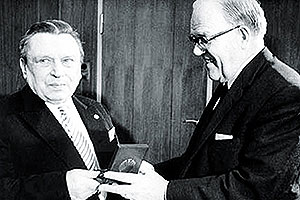 Lorenz Schweizer bei der Verleihung des Bundesverdienstkreuzes 1969.